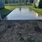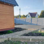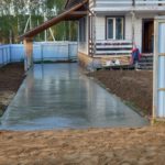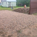 В этом случае оптимальным решением будет площадка из песка и щебня. После завершения строительства дома её можно подремонтировать, залить бетоном или использовать как основание под брусчатку.